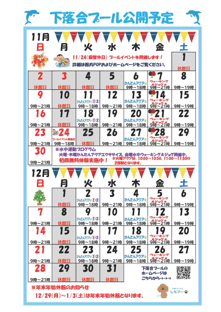 - 水中ウォーキング&ジョグ 11月の開催日を掲載しました。