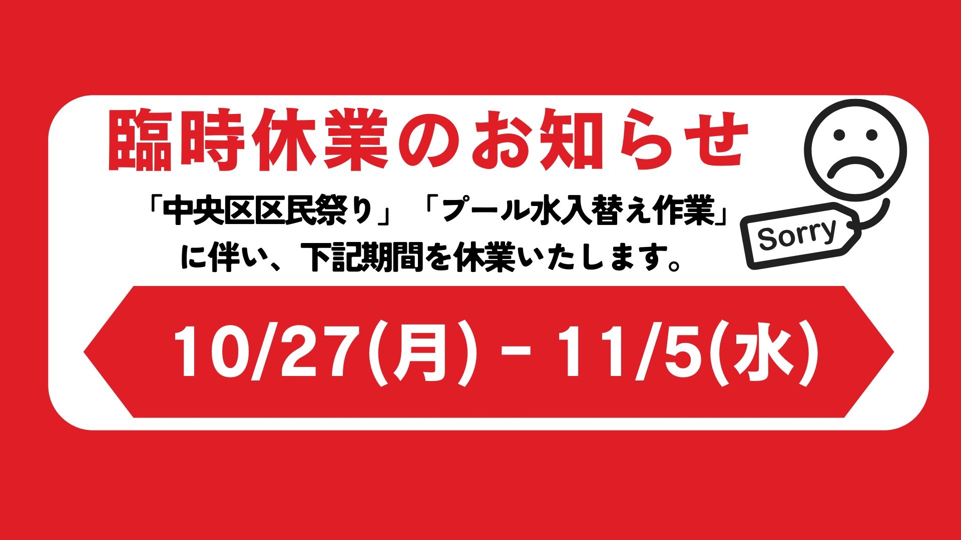 - 卓球場利用休止のお知らせ (6月28日(土)12:00 ~ 7月3日(木)18:00)