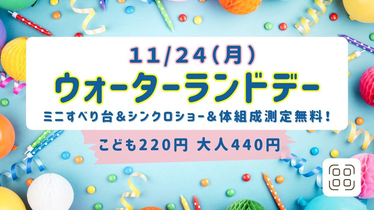 - 水中アクアビクス 11月の開催日を掲載しました。