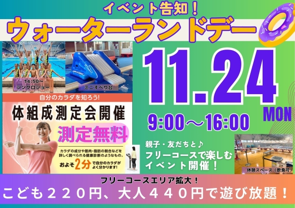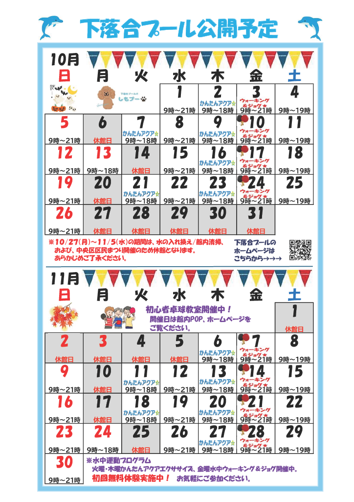 - 水中ウォーキング&ジョグ 11月の開催日を掲載しました。