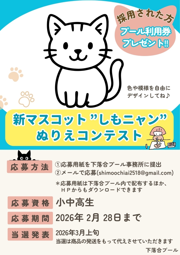 【発表】新マスコット”しもニャン”ぬりえコンテスト開催します!